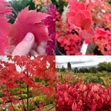 Hot reds that can be found in Autumn Blaze Maple, Burning Bush; as well as selected Blueberry and Barberry.